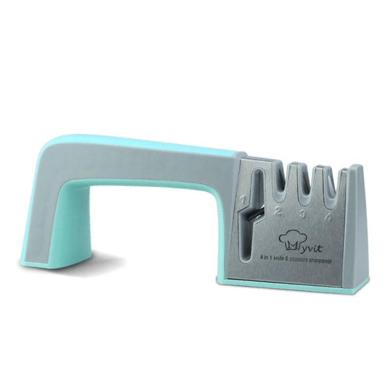 Você já se frustrou ao tentar cortar algo com uma faca cega? O Amolador de Facas Multifuncional 4 em 1 é a solução perfeita para afiar suas facas de cozinha e nunca mais passar por isso!